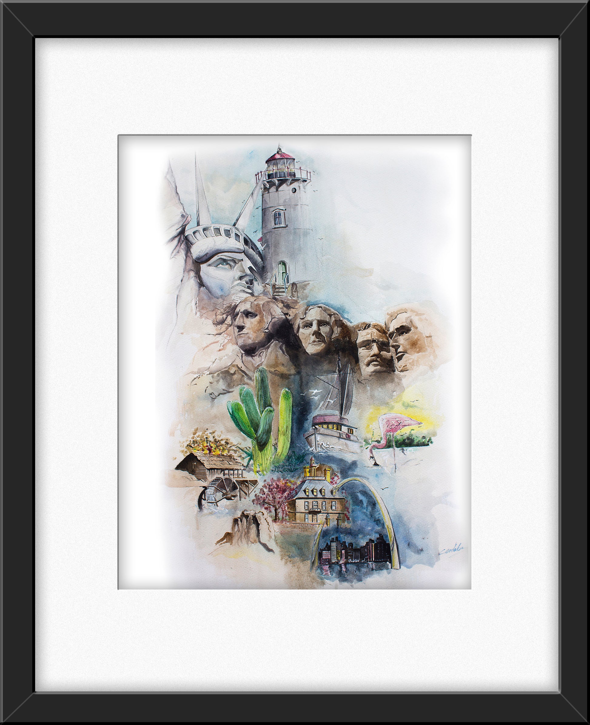 Watercolor Print 16x20 Frame & Matted with Plexiglass