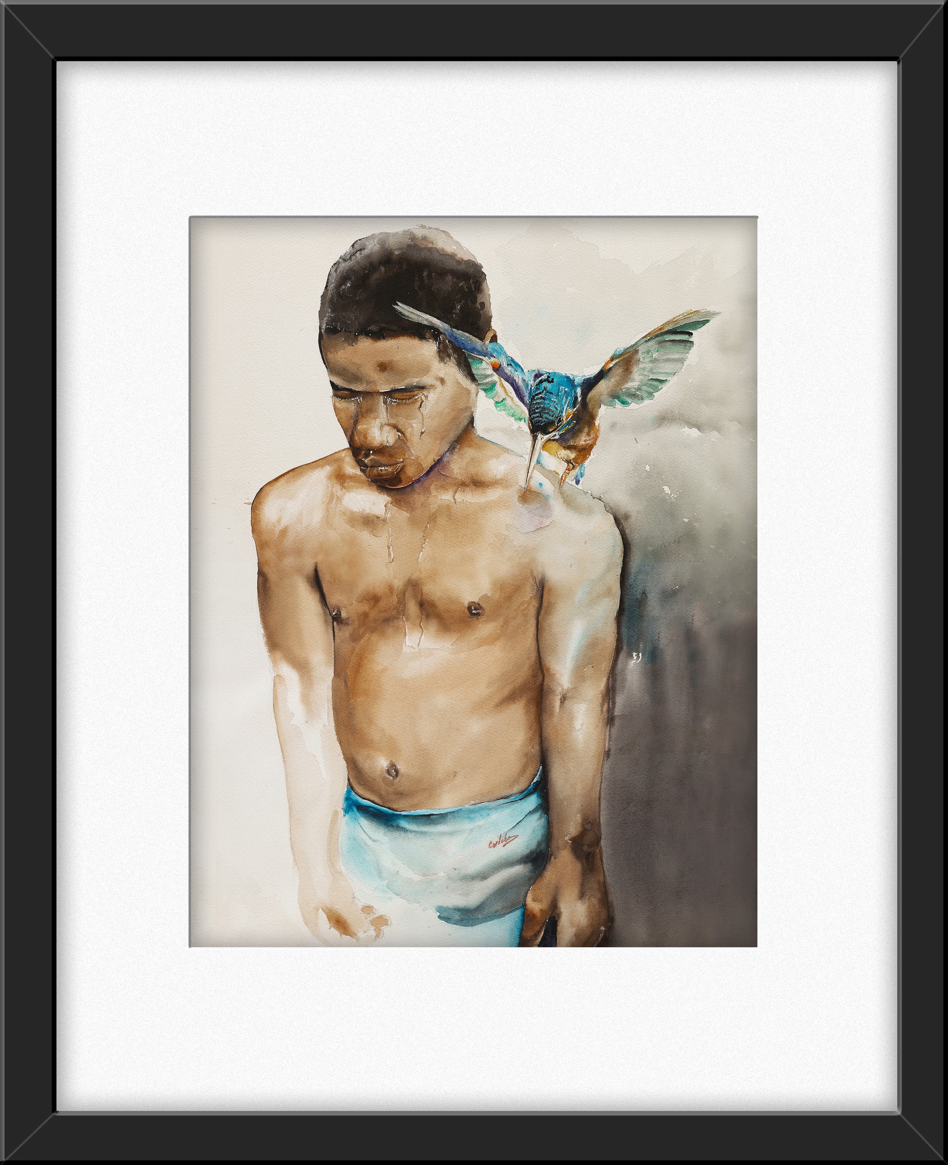Watercolor Print 16x20 Frame & Matted with Plexiglass